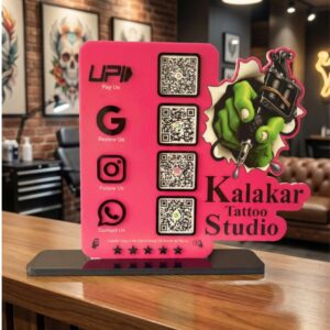 Smart NFC 4QR Standee - For Tattoo Parlour | 13 x 11 inch