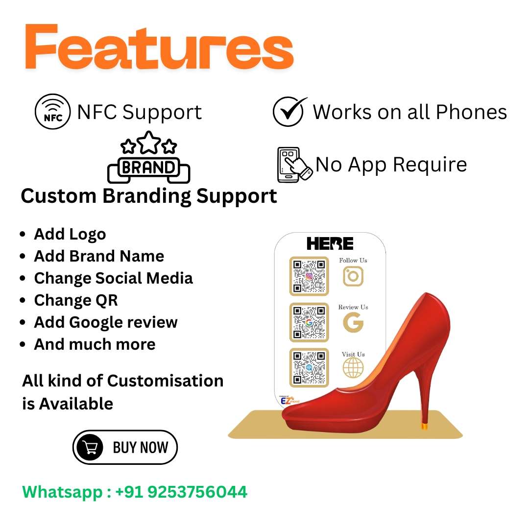 Smart NFC 3 QR Standee | UV Printed | Shoe Shape 2
